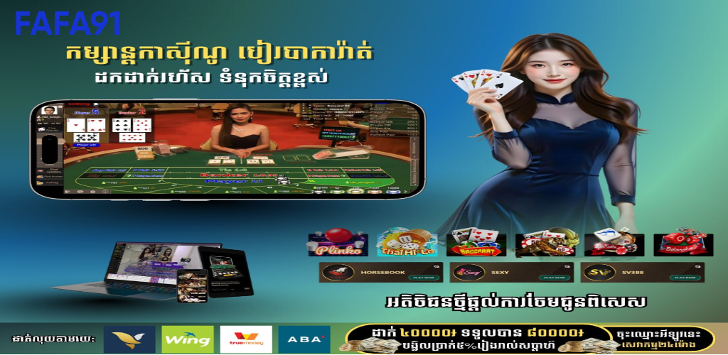បើអ្នកកំពុងស្វែងរកបទពិសោធន៍កាស៊ីណូអនឡាញដ៏តំណាងស្តង់ដារពិតជាមួយអ្នកផ្គត់ផ្គង់ជាន់ខ្ពស់ អ្នកបានមកដល់កន្លែងត្រឹមត្រូវហើយ! នៅពេលដែលអ្នកលេងនៅ FAFA91 អ្នកនឹងទទួលបានបទពិសោធន៍ហ្គេមកាស៊ីណូ។ មិនថាអ្នកកំពុងស្វែងរកស្លុតដែលរីករាយ រ៉ូលែត ចាក់បាល់ ឬហ្គេមកាស៊ីណូក្នុងពេលពិតដ៏អស្ចារ្យ កាស៊ីណូផ្ទាល់សាកល្បងធានាការកម្សាន្តពីគ្រប់ជ្រុងភាគទាំងស្រុង។ ជាអ្នកលេង FAFA91 អ្នកក៏ទទួលបានការចូលដំណើរការទៅកាន់ការផ្សព្វផ្សាយ និងរង្វាន់ប្រភេទផ្សេងៗផងដែរ។ ចាប់ផ្ដើមពីរង្វាន់ភាពដាក់ប្រាក់ដំបូងនឹងរួមបញ្ចូល អ្នកលេងនឹងទទួលបានរង្វាន់ដែលគួរឱ្យទាក់ទាញជាប្រចាំ។